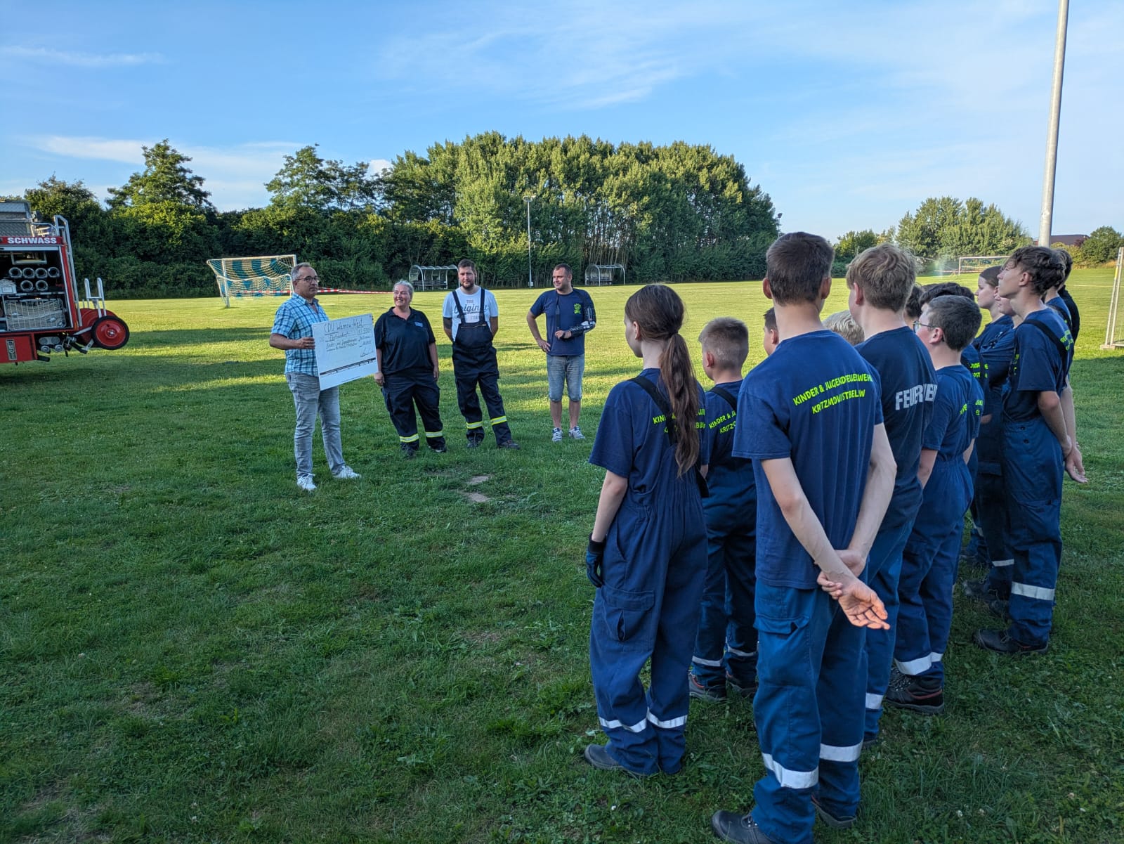 Übergabe der Spende zur Förderung der Nachwuchsarbeit der Feuerwehren